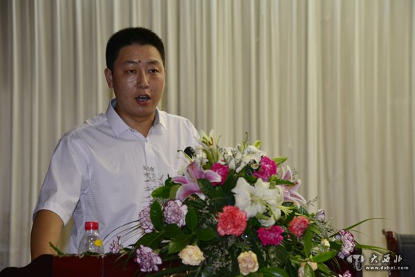 白银市副市长陈其银在新闻发布会上致词。 贾笑云 摄