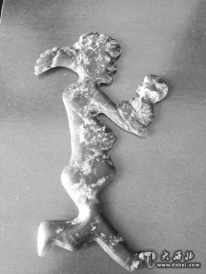 齐家文化“华夏舞圣”,材质为透闪石和碳酸岩,通高26.7公分。华夏舞圣着对襟裙服,身姿倬约、衣裙翻飞,手舞足蹈,满脸愉悦,忘情的表演,让她整个身心都陶醉在舞蹈的旋律中。齐家文化大约在公元前2500年——公元前1500年,为黄河上游地区新石器时代晚期到青铜时代早期文化。齐家文化“华夏舞圣”的发现,具有非常重要的学术价值和考古价值,对研究我国的服装史和舞蹈史,将起到非常重要的作用。