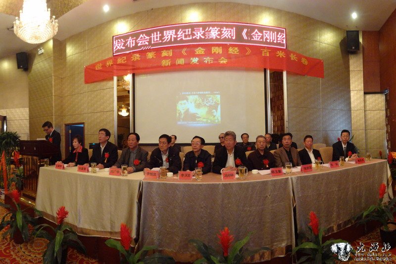 大西北网9月29日讯 由甘肃省旭东书画研究院敦煌分院院长王淑萍女士出资,我省著4篆刻家、画家、书法家等4位艺术家,历时一年零三个月联袂打造的篆刻《金刚经》百米长卷,首创两项世界纪录新闻发布会9月29日在兰州举行。省内书画、艺术界知名人士、有关方面领导出席李发布仪式。