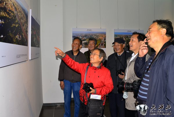 甘肃省摄影家们参观俯揽甘肃庆祝建国65周年摄影展。 贾笑云 摄