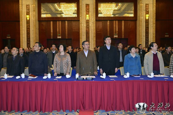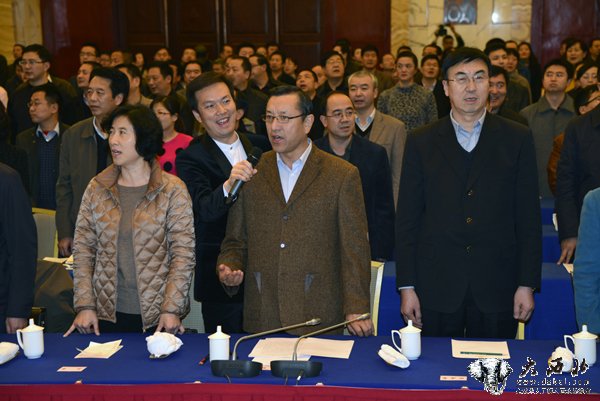 道德讲堂一开始全体与会者起立合唱歌曲《爱的奉献》。 贾笑云 摄