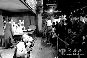 春节期间,兰州市民在金城关文化博览园的兰州非遗陈列馆参观,了解兰州牛肉拉面的历史。