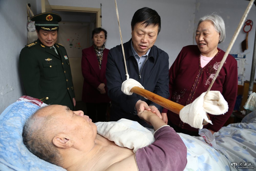 大西北网3月3日讯 3月2日下午,甘肃省文明办调研处李学山处长受省文明委委托,来到位于平凉市的武警某部医院,亲切看望“第四届甘肃省道德模范”姜致莲,向她赠送了米、面、油等慰问品和慰问金,转达了省文明委和全省各界群众对姜致莲夫妇的问候和新春祝福。
