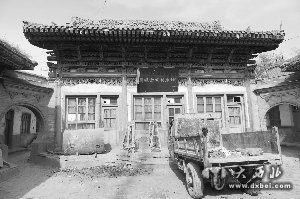 进门后,只见院子里到处堆放着杂物,墙角杂草丛生,无论房间还是厢房门前,都是垃圾遍地。尽管如此,站在这座具有百年历史的老宅院里,依旧能感受到它昔日的辉煌。走近细看,青砖雕砌的屋脊恢弘典雅,两边是装饰考究的月亮门,老房子的照壁周围也是精美的砖雕。