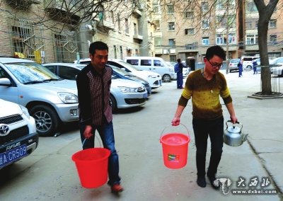 陈先生告诉记者,他家住该小区5楼。很早以前,家中的自来水水流越来越细,直到一个月前,家中自来水干脆断了水。后来大家才知道,每天只有地势较低的一楼住户家中有水,地势较高的楼层住户家一直没水。对于住户们来说,没水的日子简直就是煎熬。有些住户们跑到其他地方去提水,有些住户只能去亲戚朋友家过日子。“家里没水的日子太难熬了,家里要做饭、要洗衣服、洗澡、冲马桶,这些都没办法干了。”陈先生说。每天院子里的住户最要紧的事情就是想办法盛水,白天没水,到了凌晨5时许,陈先生家自来水管中才有一丝水流。为此陈先生每天都将闹钟定到凌晨5点起床去盛水,家里为此多买了几个大水桶。家中的脏衣服他不得不背到住在七里河的丈母娘家去清洗,顺便在丈母娘家洗个澡,他感觉这样的日子就像是在逃荒一样。