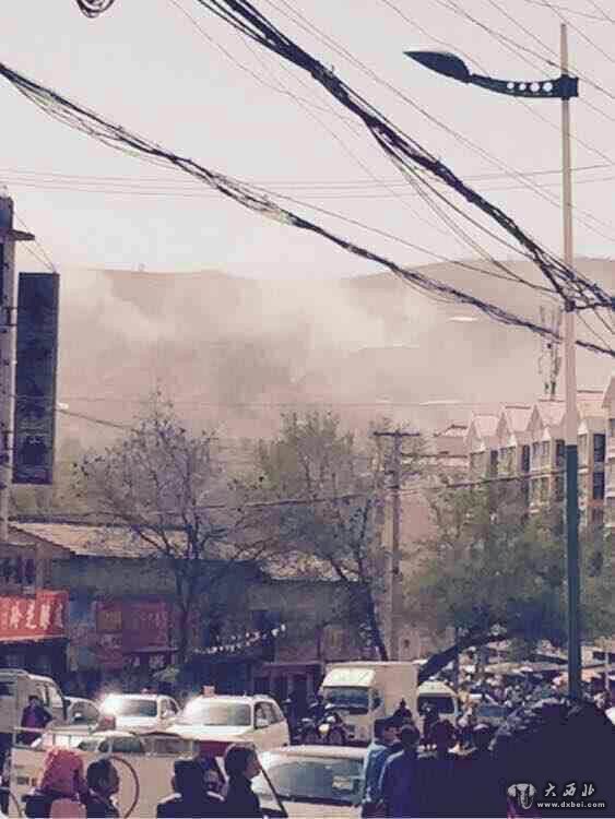 定西临洮发生地震,满山黄土飞扬。图片由网友提供。