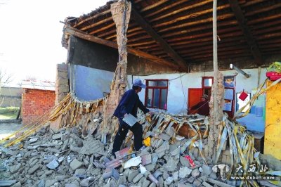 龙门镇石家铺村村民在倒塌的房屋中抢救物品新华社图片