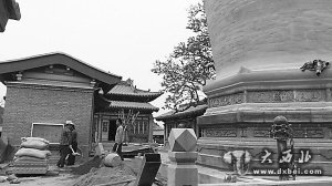 大西北网4月24日讯 昨日,记者走访兰州市白塔山公园时看到,几位工人正在白塔寺的白塔底座旁施工,据介绍,塔院的基础设施维修进入尾声,将于今年五一前完工。于去年实施的白塔塔身已完成修缮,纠偏倾斜度246毫米。