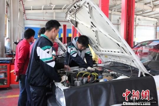 兰州理工中专适应现代职业教育发展,深化校企合作、产教结合人才培养模式,引企入校,打破之前“闭门造车”的现状。图为兰州理工中专汽车营销专业学生在实训基地维修汽车。 刘玉桃 摄