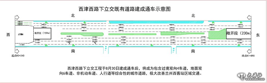 大西北网6月30日讯,西津西路下立交工程作为兰州西站城市配套二期工程的重点内容之一,自2014年8月启动建设以来,陆续完成了交通疏解、管线改迁以及大部分主体施工,将于今年8月底前全部建成。届时,这条承载着重要交通使命的路段,将一改西津西路目前双向六车道的平面形态,转而成为上下两层、双向10车道的立体交通。