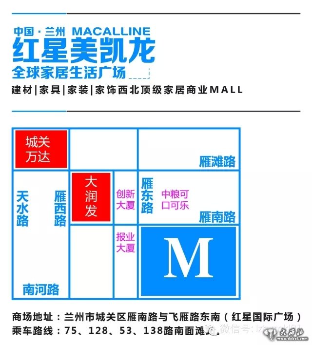 兰州红星美凯龙全球家居生活广场位于兰州市城关区雁滩高新开发区,辐射三县五区及周边城市,是西北首席家居百货MALL格局城市商业综合体。兰州红星美凯龙秉承集团最新设计精髓、集家居MALL、SHOPPINGMALL、商业步行街、高端住宅、SOHO公寓、地标级商务写字楼为一体,是兰州唯一的多元化超大体双MALL革局的城市综合商圈,相信未来定能为兰州市民们带来前所未有的购物体验!