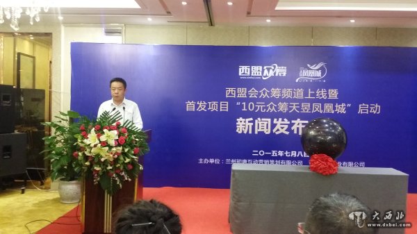 大西北网讯 兰州首家专业众筹平台——西盟会众筹频道上线仪式暨首发项目“10元众筹天昱·凤凰城”启动新闻发布会于2015年7月9日在兰州飞天大酒店宴会厅举行,本次发布会由兰州初唐互动营销策划有限公司主办,并得到了兰州市安宁区工信局局长米积虎、兰州市安宁区商务局局长李燕、兰州市安宁区中小企业局局长李雪波、兰州市安宁区商务局副局长张文玉、兰州市安宁区商务局办公室主任张晓斌、甘肃天昱置业有限公司副总经理白金等众多政企领导的鼎力支持!同时本次发布会还吸引了众多知名媒体以及学术界、商界、众筹界人士的关注和参与。