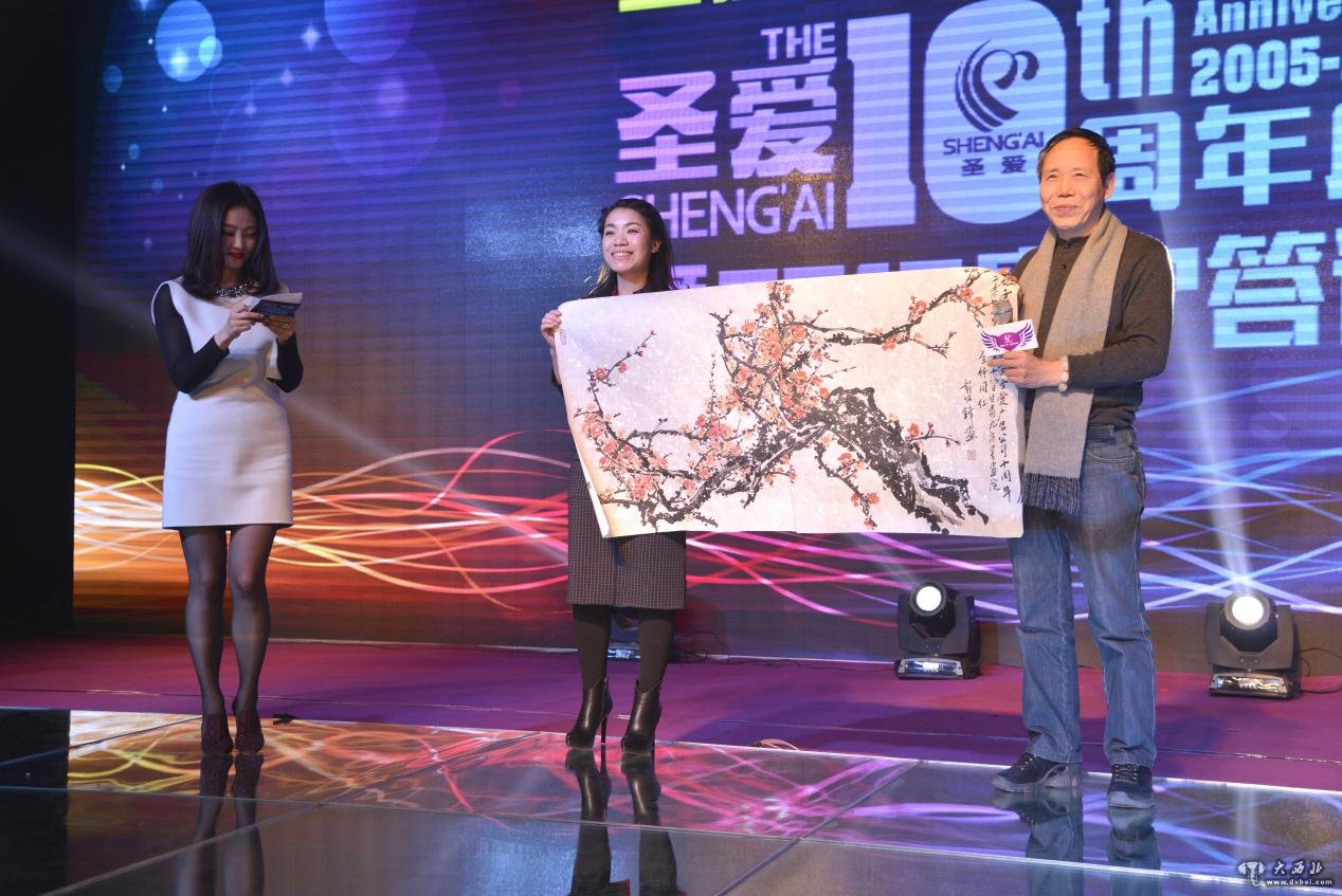 圣爱十周岁生日,社会各界好友在百忙之中抽出时间前来祝贺,甘肃书画界的前辈,德高望重的甘肃九源书画院院长龙佐锋先生代表甘肃九源书画院的全体书画老师们给圣爱送来了一份丰厚的礼物—龙老师的梅画图,宝剑锋从磨砺出,梅花香自苦寒来,这正是圣爱的写照。这幅梅画图之意义深远,让全场来宾感受到了陇南人民的深情厚谊。