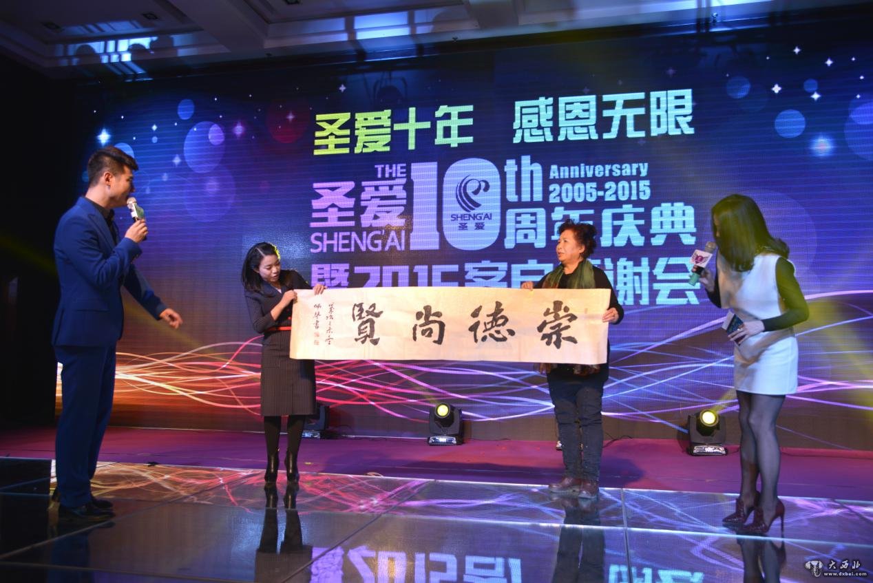 随后的晚宴,更是节目精彩纷呈,很多节目都是圣爱首发;圣爱为答谢新老朋友,晚宴期间进行了三轮抽奖活动,奖品有精良茶具、苹果ipad、iphone6Splus。来宾们在欢乐祥和的气氛中见证了圣爱的十年风彩。