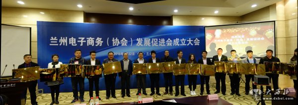 与会领导为兰州电子商务(协会)发展促进会第一届会长副会长单位授牌。
