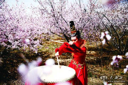 巉口龙滩万亩桃林花开烂漫,吸引艺术家来园献艺。雪永鹏摄