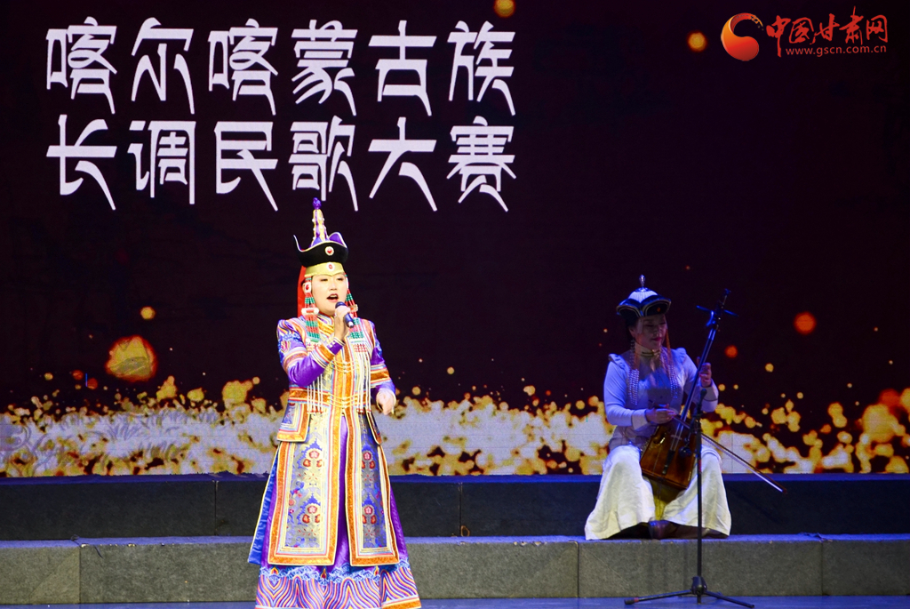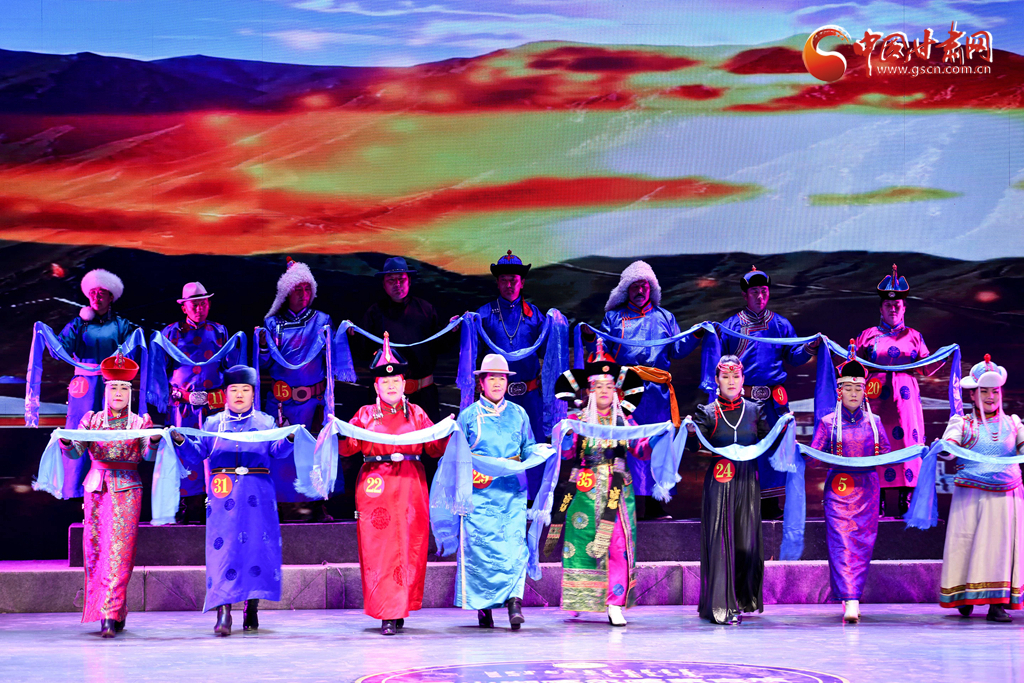 当日,内蒙古阿拉善右旗阿朝苏木、甘肃肃南裕固族自治县白银蒙古族乡、张掖甘州区平山湖蒙古族乡的37位参赛选手,高举圣洁的哈达走进张掖演会中心舞台中央,在祝福语中,平山湖喀尔喀蒙古族长调民歌非遗传承大赛拉开帷幕。
