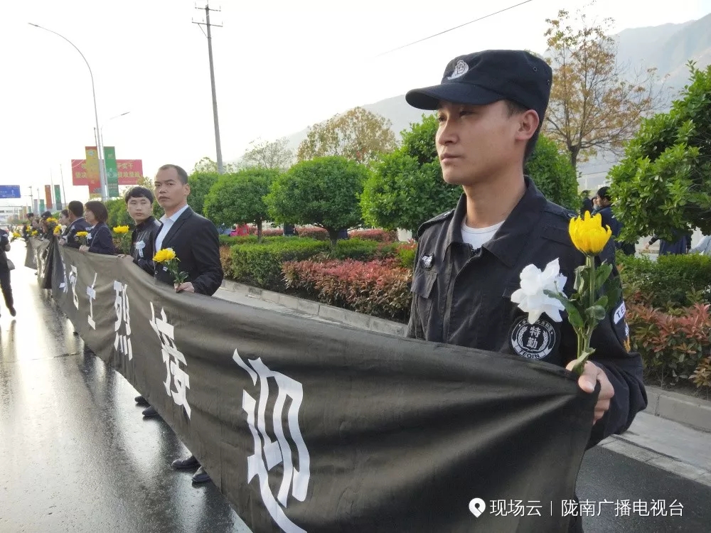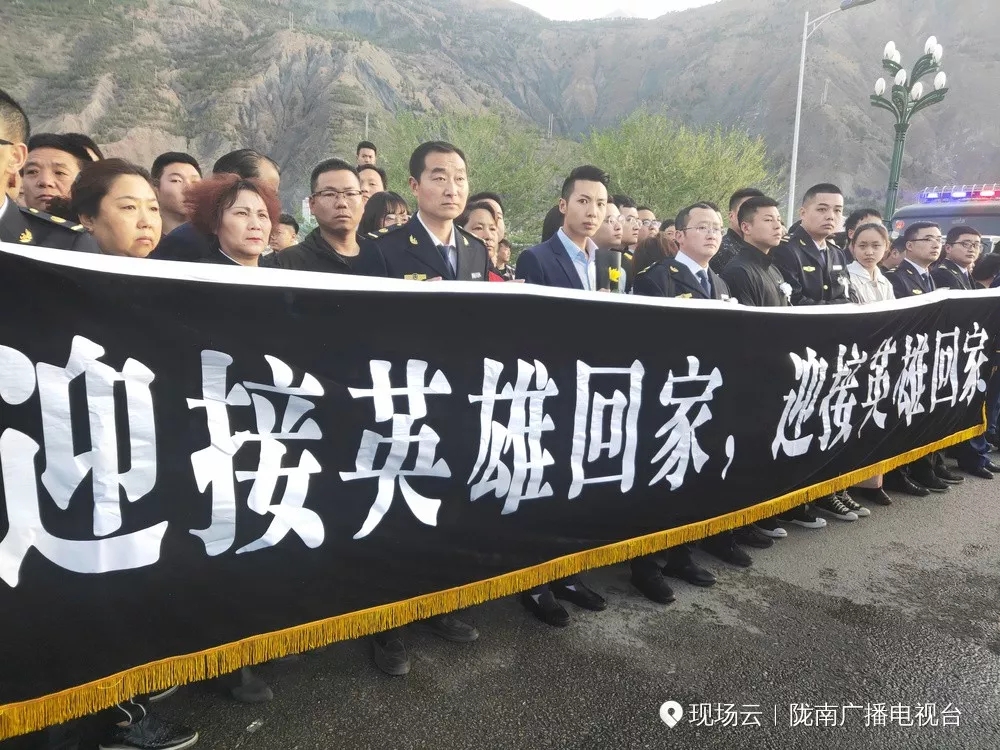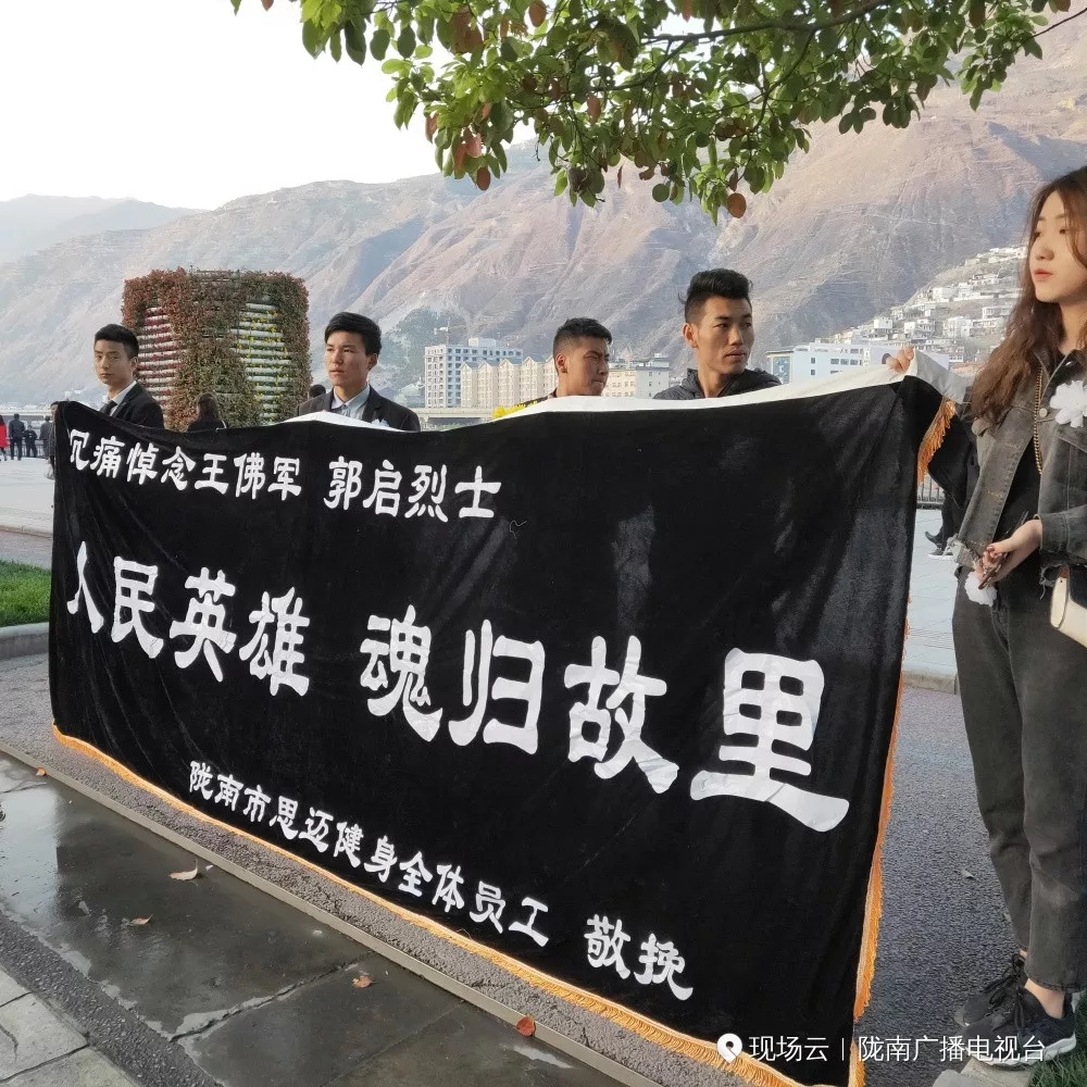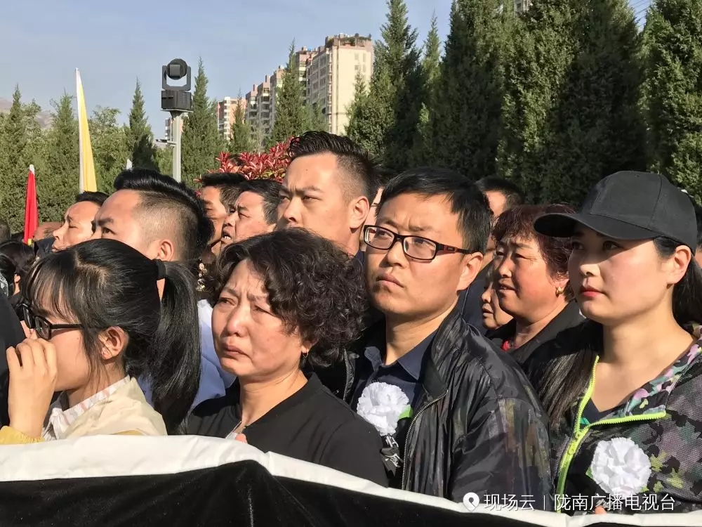 现场群众泪别英雄。