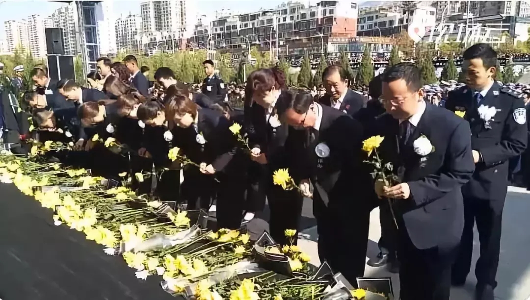8时50分许,悼念仪式开始。现场气氛凝重,人们神情肃穆,向英雄致礼、向英雄鞠躬、向英雄道别。