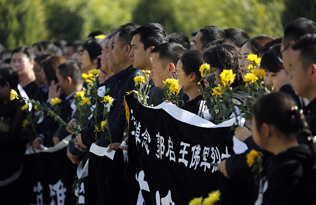 4月6日,在四川木里森林火灾扑救中英勇牺牲的烈士郭启、王佛军骨灰回到家乡甘肃陇南,受到家乡父老乡亲迎接。新华社发(张帆 摄)