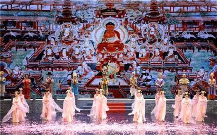 丝路漫漫,驼铃悠扬,气势恢宏的“千手观音”,婀娜多姿的“波斯舞”,风情万种的“反弹琵琶”,绚丽夺目的“敦煌壁画”……由甘肃省歌舞剧院创排的《丝路花雨》,作为蜚声中外、名震四海的经典之作,自开演以来赢得无数掌声与赞誉,它把中华民族优秀的传统文化,用艺术的方式淋漓尽致地表现,既有传承,又有发扬。从1979年到2019年,整整40年,《丝路花雨》依然熠熠生辉,永葆“青春”魅力,成为甘肃最具代表性的文化名片。