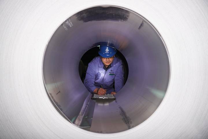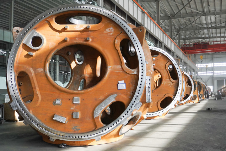 这是1月23日在位于酒泉经济技术开发区的日月重工(甘肃)有限公司拍摄的风机轮毂。新华每日电讯记者 马希平 摄