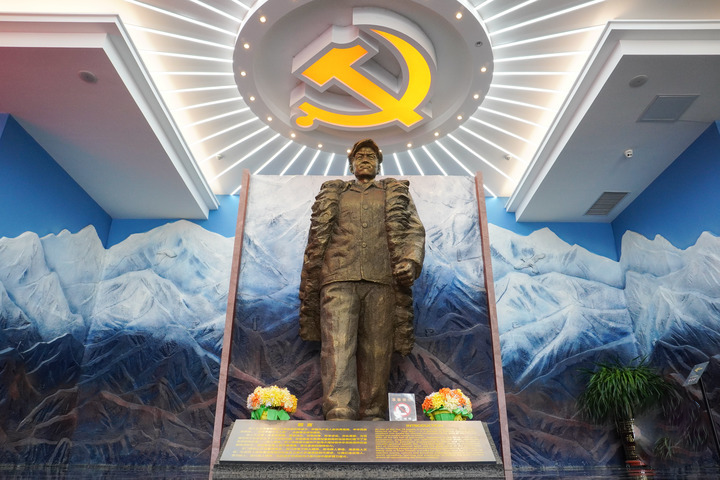 这是1月23日在玉门铁人王进喜纪念馆拍摄的王进喜雕像。新华每日电讯记者 马希平 摄