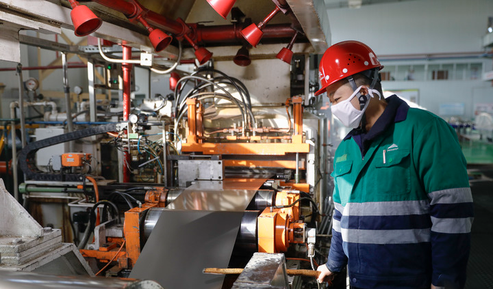 1月22日,在甘肃省金昌市金川集团镍合金有限公司,轧机主操手王威正在轧制手撕镍带。新华每日电讯记者 方欣 摄