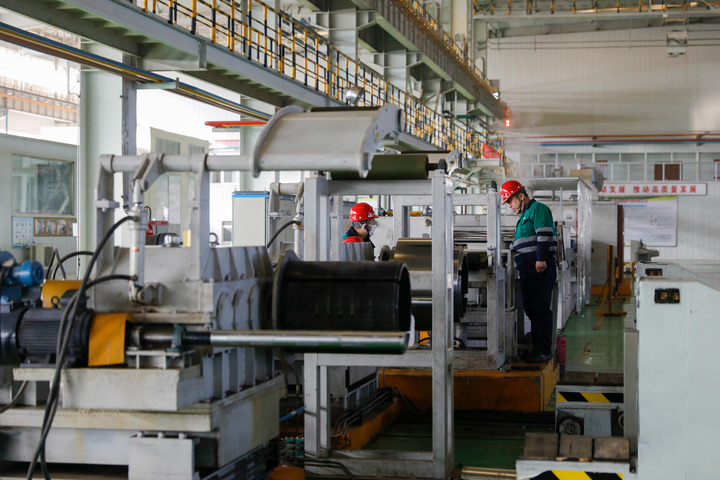 1月22日,在甘肃省金昌市金川集团镍合金有限公司,工作人员在生产车间忙碌。新华每日电讯记者 方欣 摄