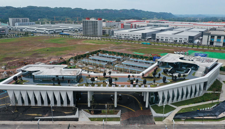 这是2022年7月20日在四川省宜宾市三江新区拍摄的东部产业园能源港(无人机照片)。新华社记者王曦摄