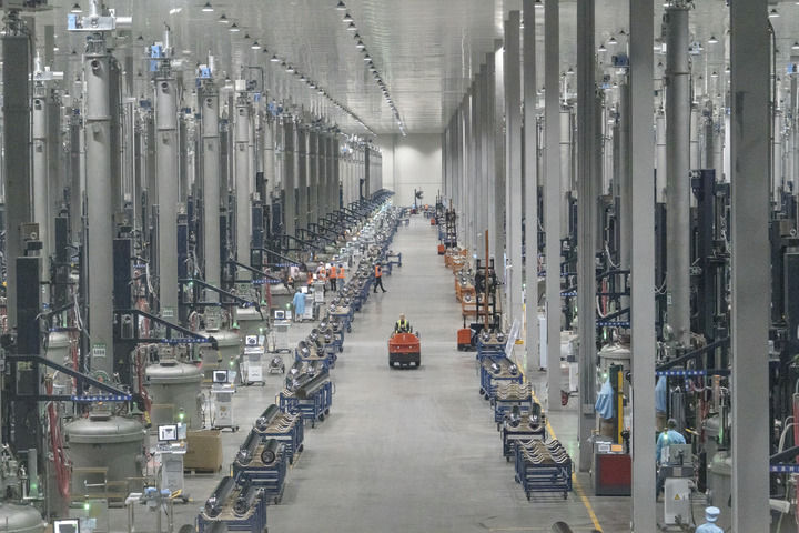这是四川省乐山市京运通新材料科技有限公司的单晶硅棒生产车间(2023年3月16日摄)。新华社记者唐文豪摄