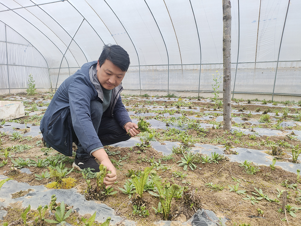 群众收获大棚栽培的山野菜 杨健强 摄