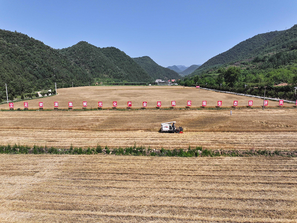 麦浪千层、机器轰鸣,又是一年麦收时。6月17日,成县二郎乡店村村板蓝根标准化种植基地种植的倒茬小麦迎来丰收。