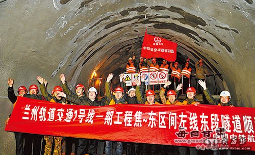 兰州轨道交通施工人员庆祝隧道贯通