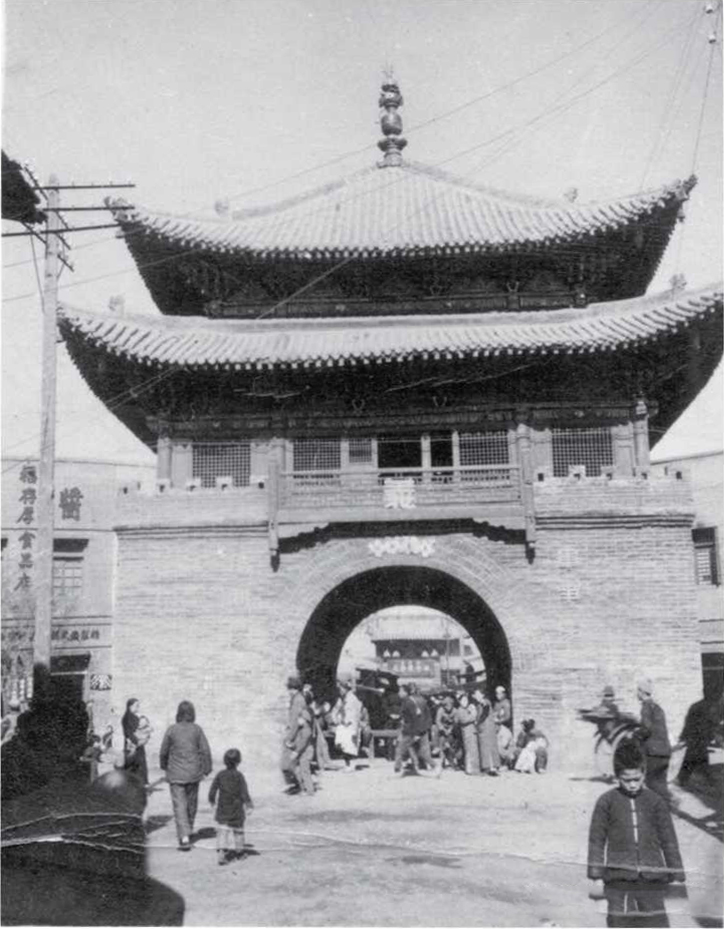 这是1937年抗战前从白塔山拍摄的中山铁桥及兰州西关的照片