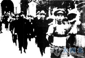 1924年召开有中国共产党人参加的国民党第一次全国代表大会,图为孙中山和李大钊等步出会场。