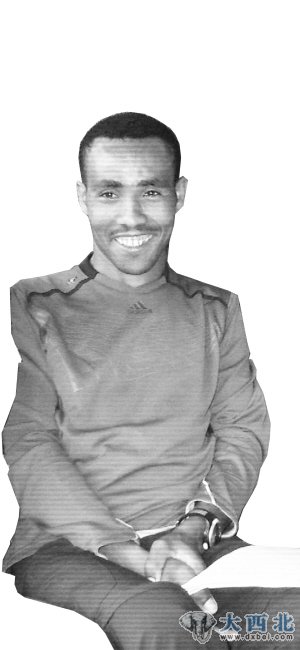 作为“兰州银行杯”2011兰州国际马拉松赛上夺冠的热门人选之一——吉尔马·阿瑟法(埃塞俄比亚),受到了广泛关注。走进飞天宾馆,记者看到身穿黄色运动衣的吉尔马·阿瑟法正站在大厅的电话旁,拨打着电话。黄色的运动衣,白色的运动裤,让站在电话旁吉尔马·阿瑟法显得更加干练。不多时,细心的吉尔马·.阿瑟法发现一直在关注他的记者。虽然彼此是第一次见面,但吉尔马·阿瑟法却很热情地向记者询问:“您会讲英语么?”“一点点”记者答道。“一点点,好的,我也是一点点。”如此,轻松的开场白,一下拉进了记者与吉尔马.阿瑟法的距离。