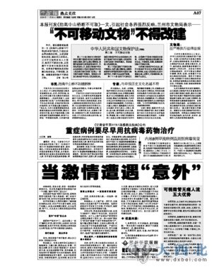 作为唯一一个黄河穿城而过的省会城市,这座拥有百年历史的铁桥一直都是作为兰州的标志性建筑和珍贵的文化遗产让兰州人引以为豪。就在“抬高中山桥”的设想出笼之时,就立即招来社会各界的种种非议。昨日,记者从有关部门了解中山桥抬高的具体情况时,相关部门的态度却是模棱两可:兰州市交通局有关负责人表示,有关抬高中山桥的具体情况他们并不清楚,具体工作是由城建部门负责。而市建委方面给出的答复是:对中山桥只是维修加固,具体的方案还没有定下来。