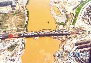 2003年正在建设中的雁滩大桥,桥两边一片荒凉,今天已成为兰州标志性的建筑