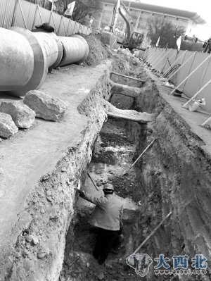 兰州市政建设集团平凉路、皋兰路污水全收集工程项目部李广学说:“今年3月8日开工后,我们对地下的老管网做了10多天调查,并进行了详细的排摸登记。即使这样,施工时还是发现了大批的不明老管线。其中,十字路口的地下不明管线最多。平凉路有5个路口,计划每个路口的施工期限为3天时间。结果最难的一个路口用了40天时间。”“施工中,牵扯到其他单位管线的事太多了。有时候,挖开地面后,都不知道是谁家的管子。当我们好不容易找到业主单位时,他们也不知道这是什么时候铺设的管道。并且,大型挖掘机无法展开施工,我们只能采取人工作业的方式一点一点开挖沟槽,在这里施工就象探‘地雷’!并且,调查地下各种老管道的来龙去脉,寻找管道的归属单位,协调和处理这些问题,要花费大量的人力和时间,对我们来说是影响工期的又一个‘拦路虎’。 ”李广学很无奈地说。