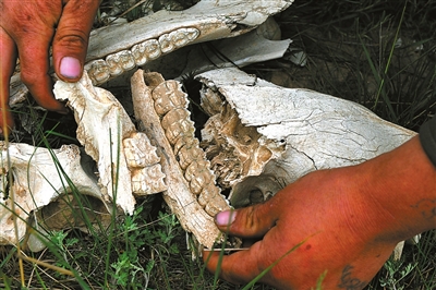 山顶上被挖出的骨骸随意丢弃,盗洞深浅不一,据目测,盗洞、坑穴最深的有四五米,最浅的有1米。从古墓周围挖掘的泥土新旧程度看,古墓是在不同时期被盗,有的盗洞口已被蒿草遮掩。古墓四处有丢弃的矿泉水瓶和香烟盒,散落的除人骨外,还有大型动物骨头,部分骨头呈绿色。村民分析,呈绿色的骨头,可能是埋葬在铜器旁边,致骨头变色。古墓散布整座山头,被盗古墓有百座之多。