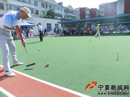 7月20日,在银川市湖滨门球场,2015年宁夏市民运动会暨第22届全区门球赛开赛。