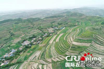从龙王坝村的窑洞宾馆向下望去,百亩梯田层叠壮丽,气势非凡,这里的人们通过辛勤劳作,向着美好的未来奋斗。