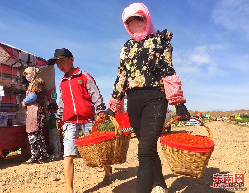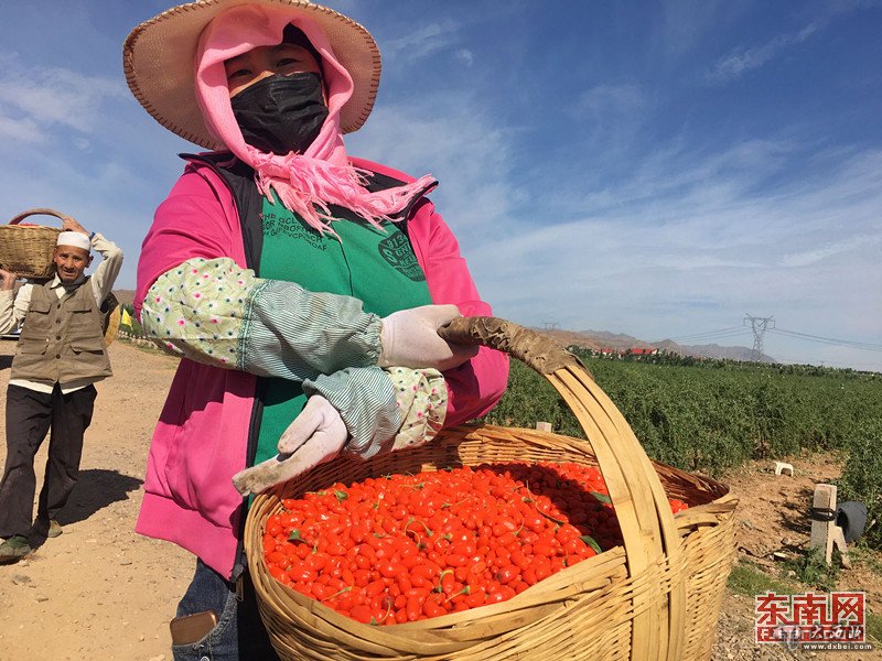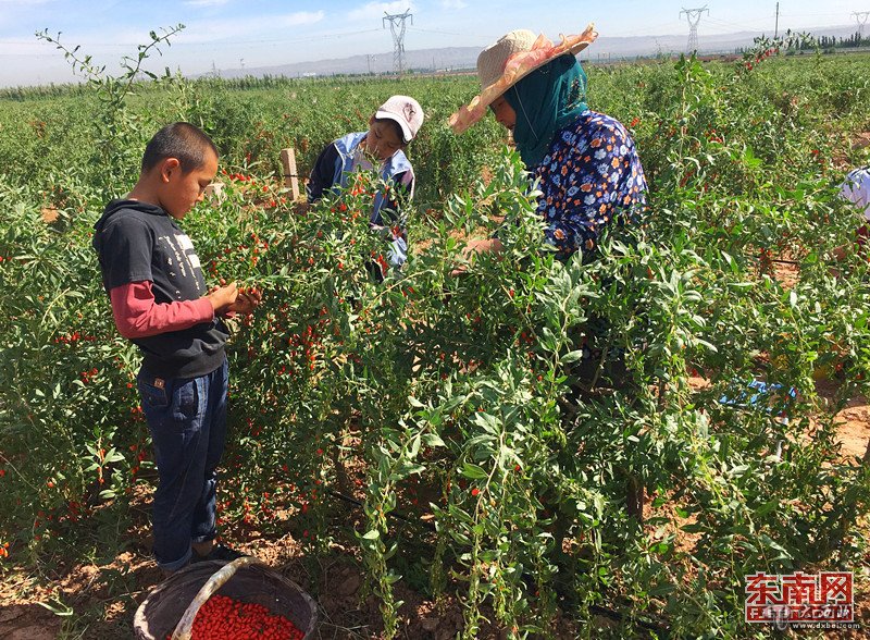 在枸杞采摘期,每天都有上千名农民参与采摘,增加收入。 东南网记者 颜财斌 摄