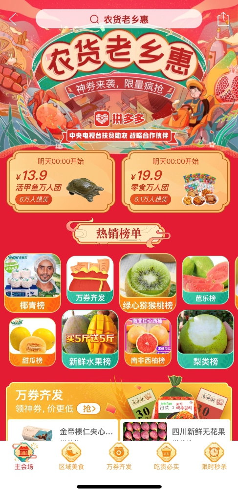 据悉,此次拼多多“农货节”将持续到8月25日,联手全国约500个农产区,在12天内推出超过20万款全网极致性价比的全国农特产尖货,通过“万人团秒杀”、多多果园等现象级入口,直连“城市小区”与“田间地头”,推动农货特产高速上行。