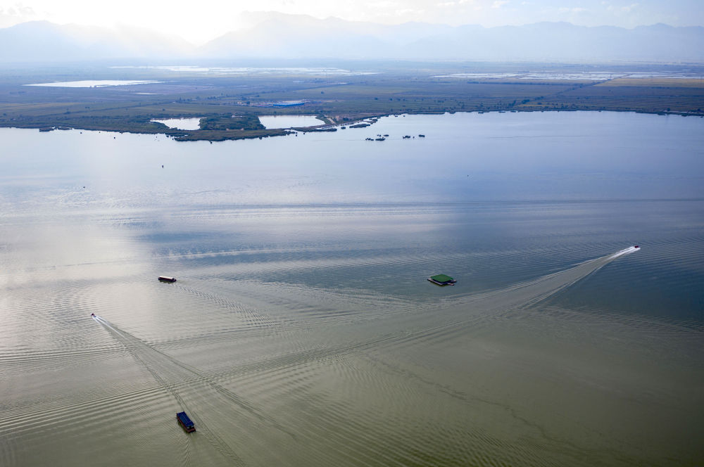 据悉,沙湖景区总面积80.1平方公里,其中湖泊面积45平方公里,沙漠面积22.5平方公里。 新华社记者杨植森摄