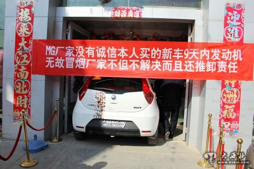 吕女士直接把车开在了名爵经销商的门口,并且拉上了横幅。 本网记者 刘志强摄