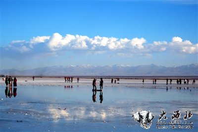 图为10月6日,游客在有“天空之境”美誉的茶卡盐湖观赏美景。黎晓刚摄