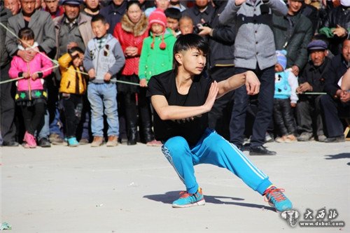 14日的早上,阳光明媚,当温暖的阳光斜照在农家院子里时,广场上响起了《男儿当自强》歌曲,不一会儿时间,广场上便站满了人。“你看、你看,那小孩子真可爱。”当表演武术的小孩们走上舞台时,观看的人群中发出祝福的话语。