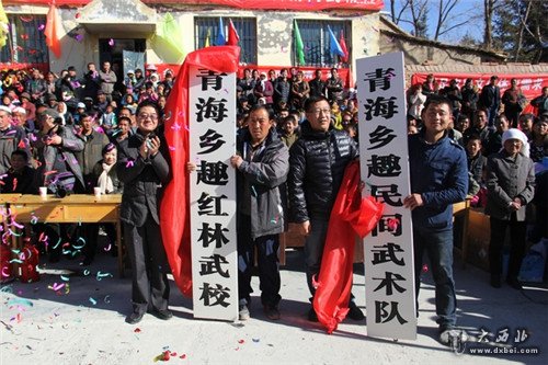 2月14日是情人节,对城市青年人来说,是一个美好的日子。但对湟中县拦隆口镇红林村的父老乡亲们和孩子们更是值得庆祝的日子,这天,在省体育局、省文联、省文化厅、西宁市体育局、西宁市旅游局、西宁市文化广播局及湟中县人民政府的指导下,由西宁乡趣科技公司等单位爱心捐资的青海省首个乡村武术学校——青海乡趣红林武校在这里正式成立,这标志着我省乡村有了正规的武术学校。同时,青海乡趣民间武术队也正式成立。